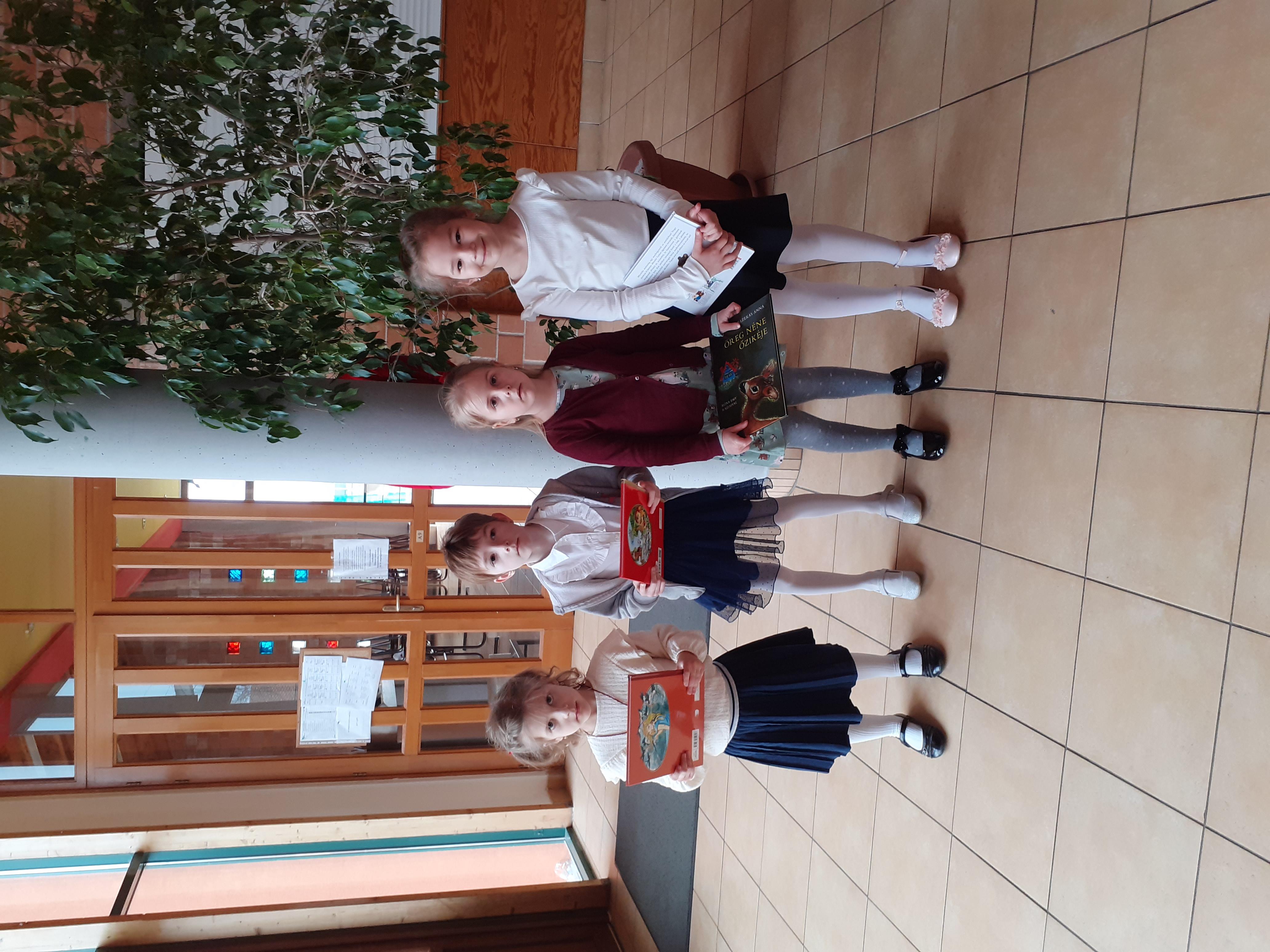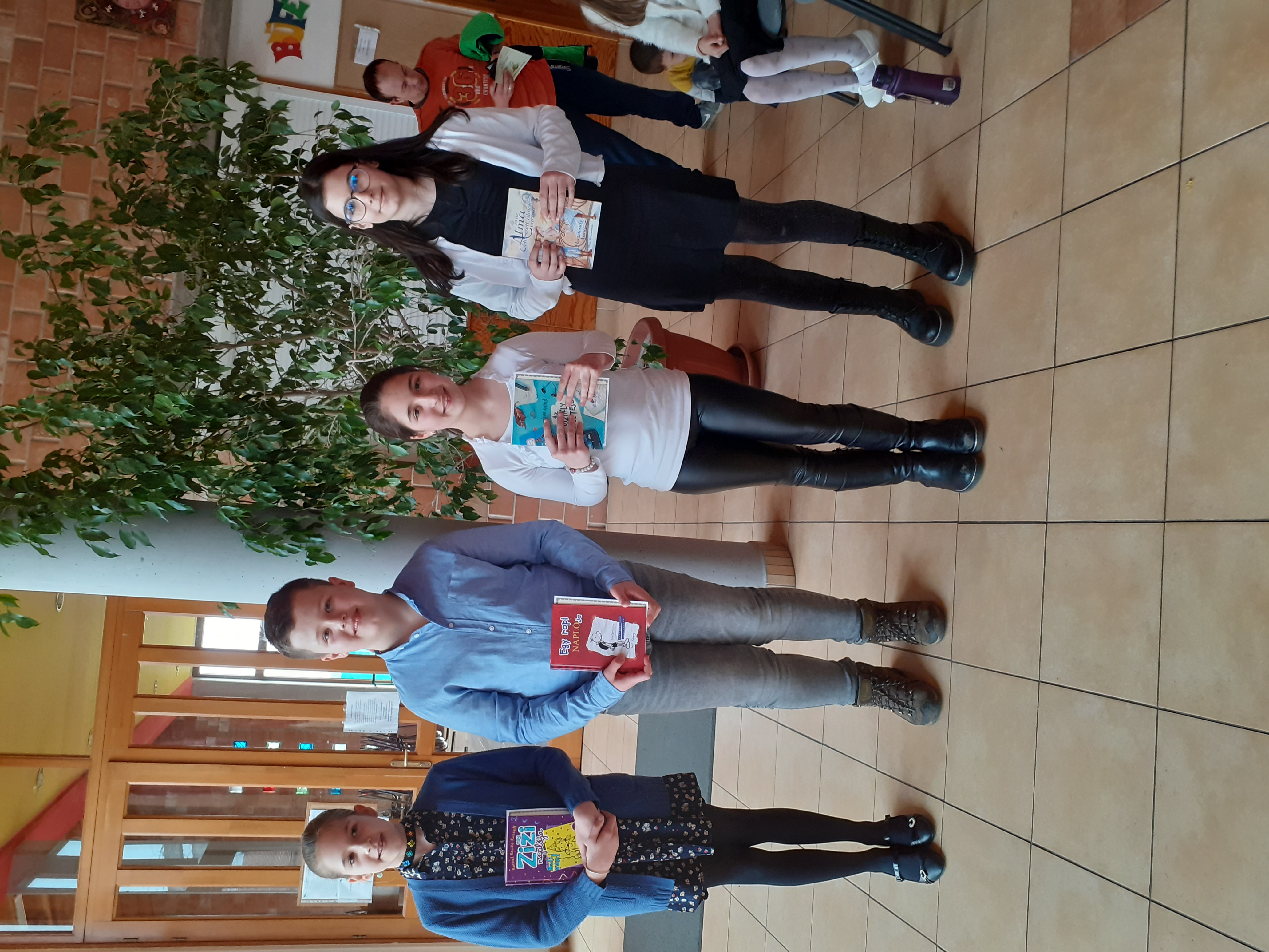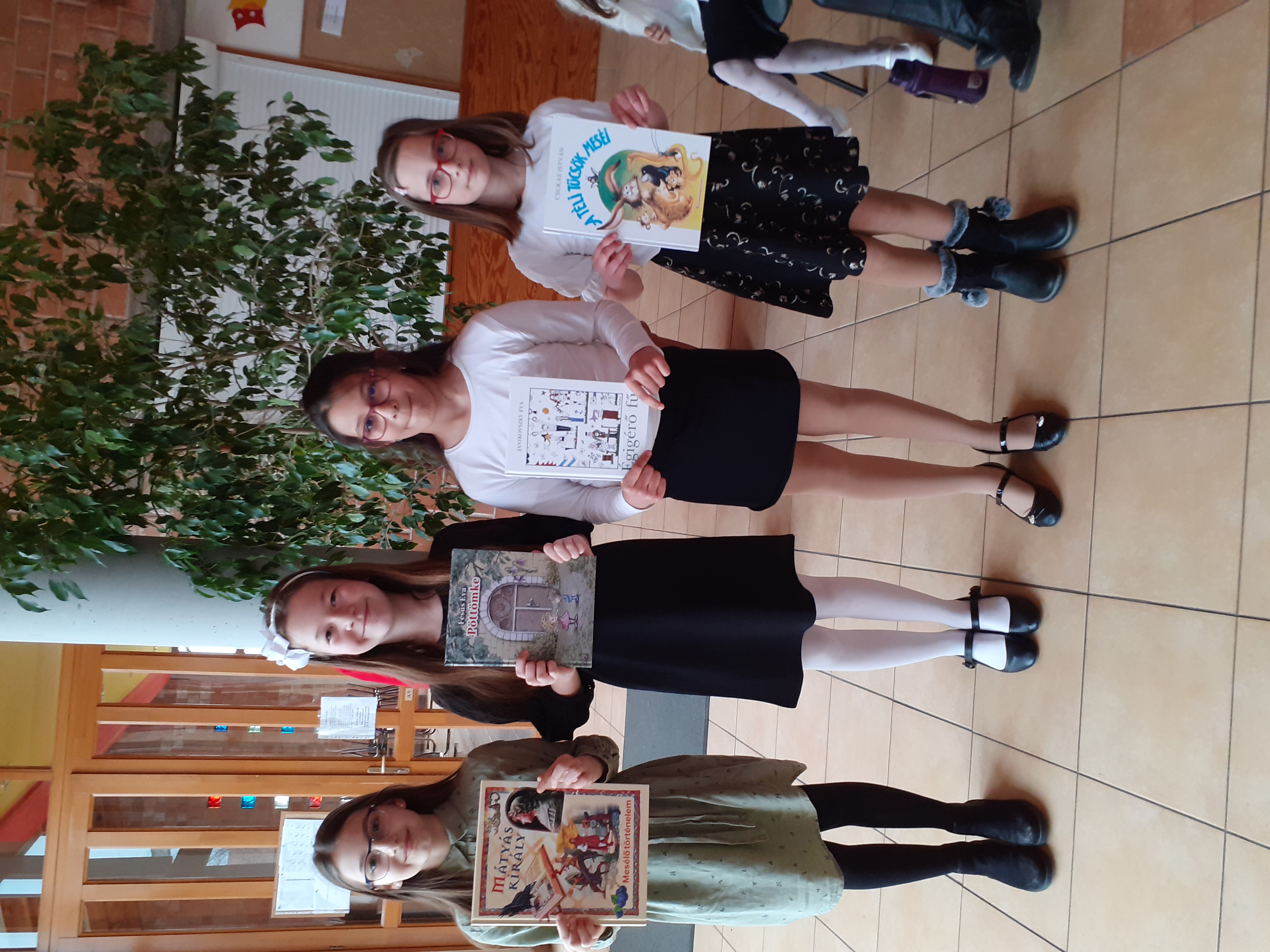 A következő blokkban a tegnapi mese-és prózamondó verseny újabb helyezettjei következnek. Először a 7-8. évfolyamosok kategóriájában 3. helyezést elért Fekete Vanessza Nógrádi Gábor: Kanári című művéből adott elő egy részletet, majd a László Viktória, aki második helyezést ért el a megmérettetésen, Móricz Zsigmond: Légy jó mindhalálig című regényének egy részletét mondta el. Felkészítő tanár mindkét esetben Deák Annamária tanárnő volt.