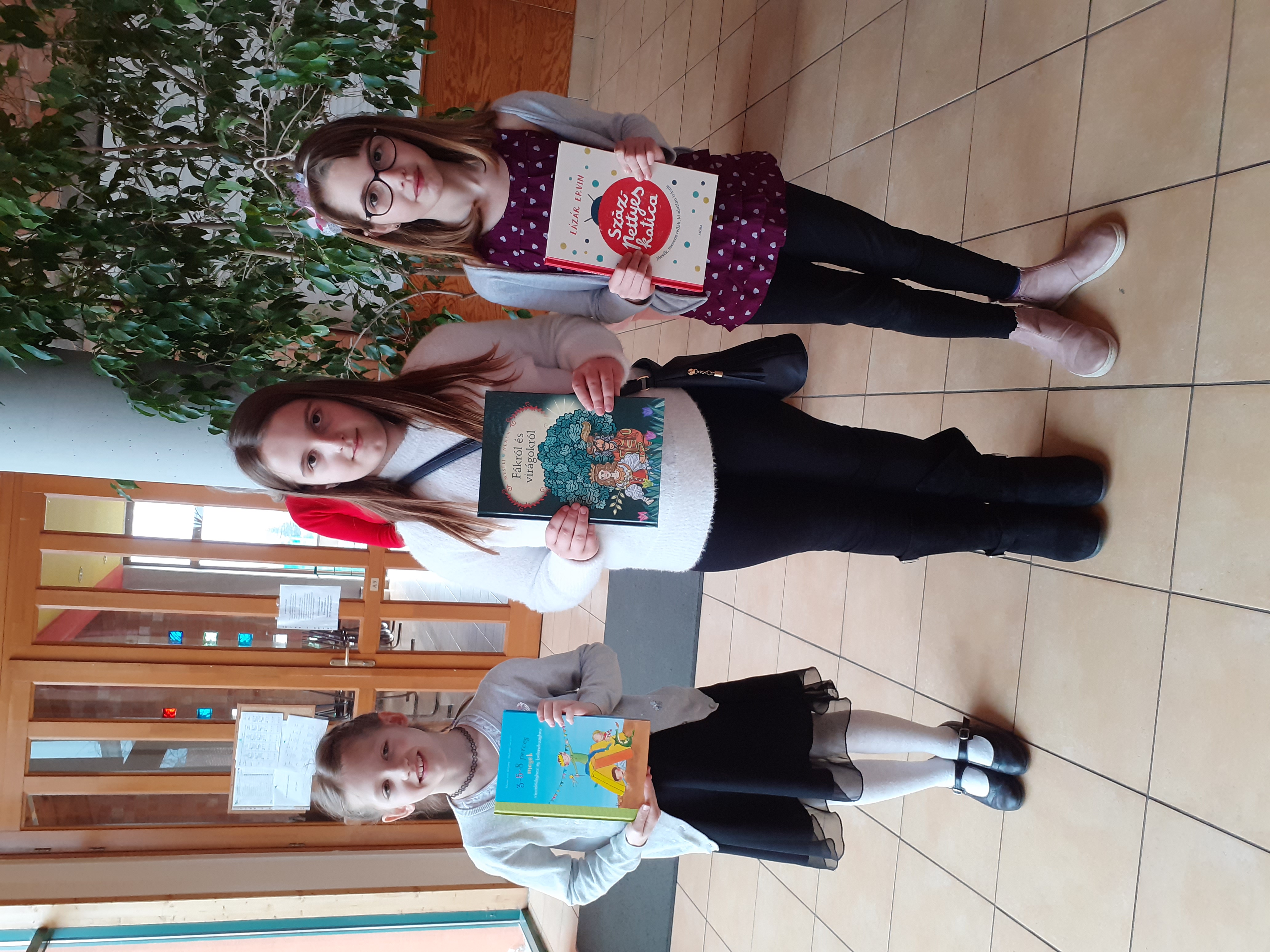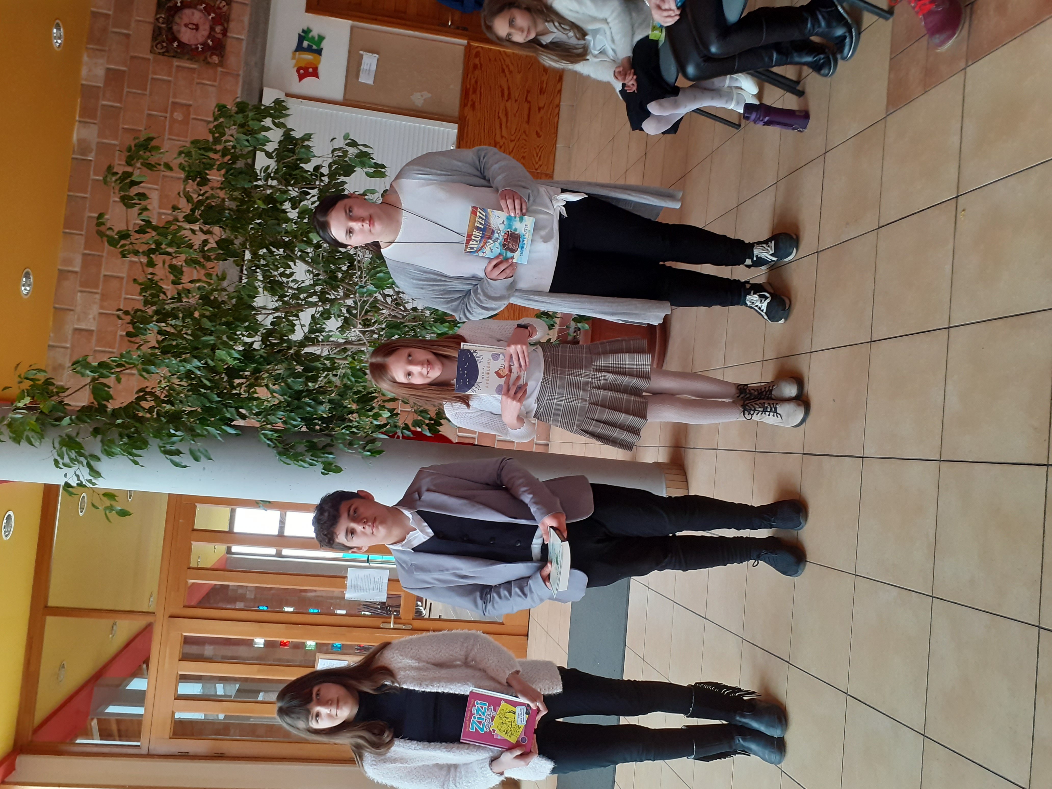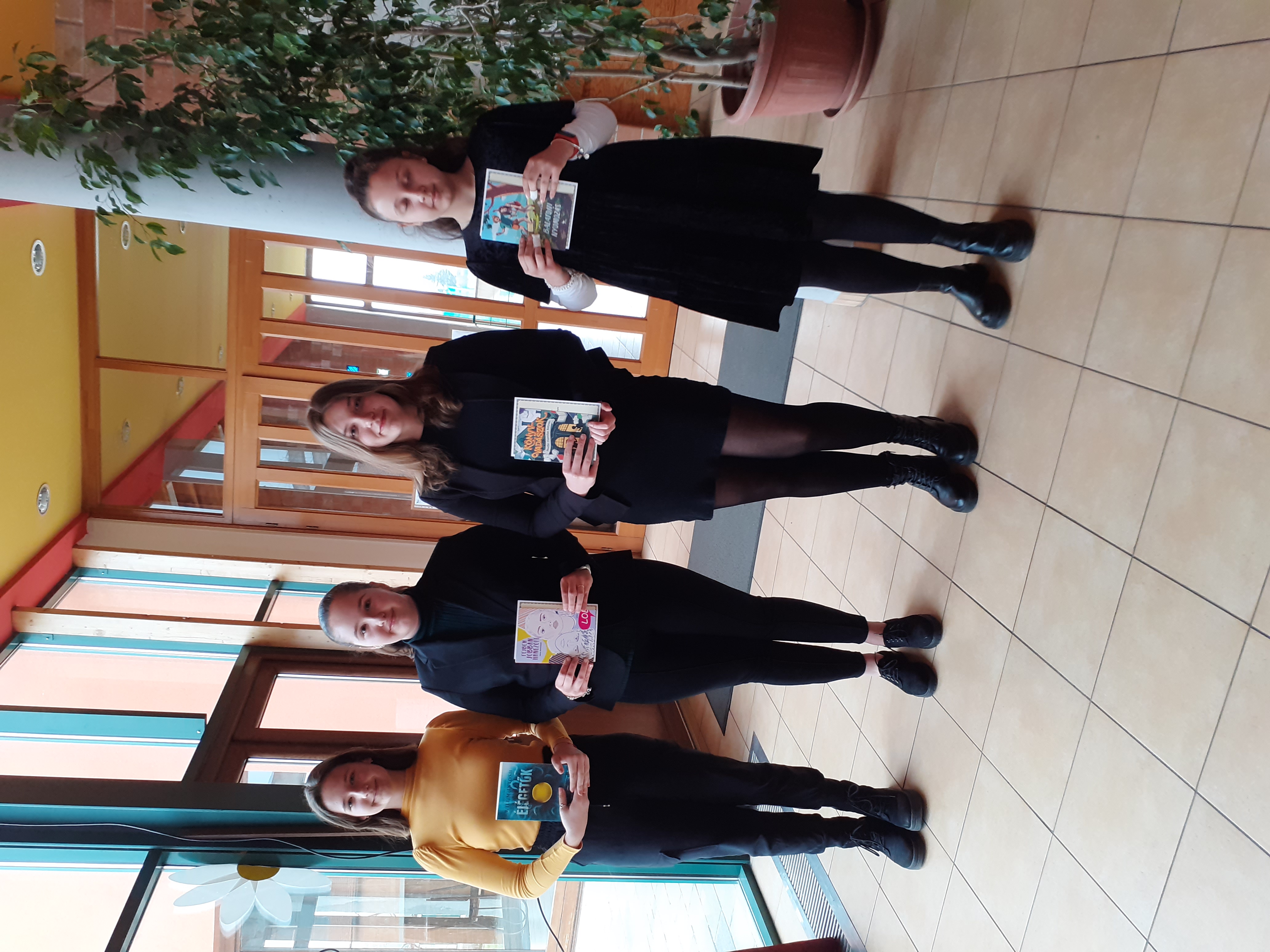 A következő blokkban a tegnapi mese-és prózamondó verseny újabb helyezettjei következnek. Először a 7-8. évfolyamosok kategóriájában 3. helyezést elért Fekete Vanessza Nógrádi Gábor: Kanári című művéből adott elő egy részletet, majd a László Viktória, aki második helyezést ért el a megmérettetésen, Móricz Zsigmond: Légy jó mindhalálig című regényének egy részletét mondta el. Felkészítő tanár mindkét esetben Deák Annamária tanárnő volt.